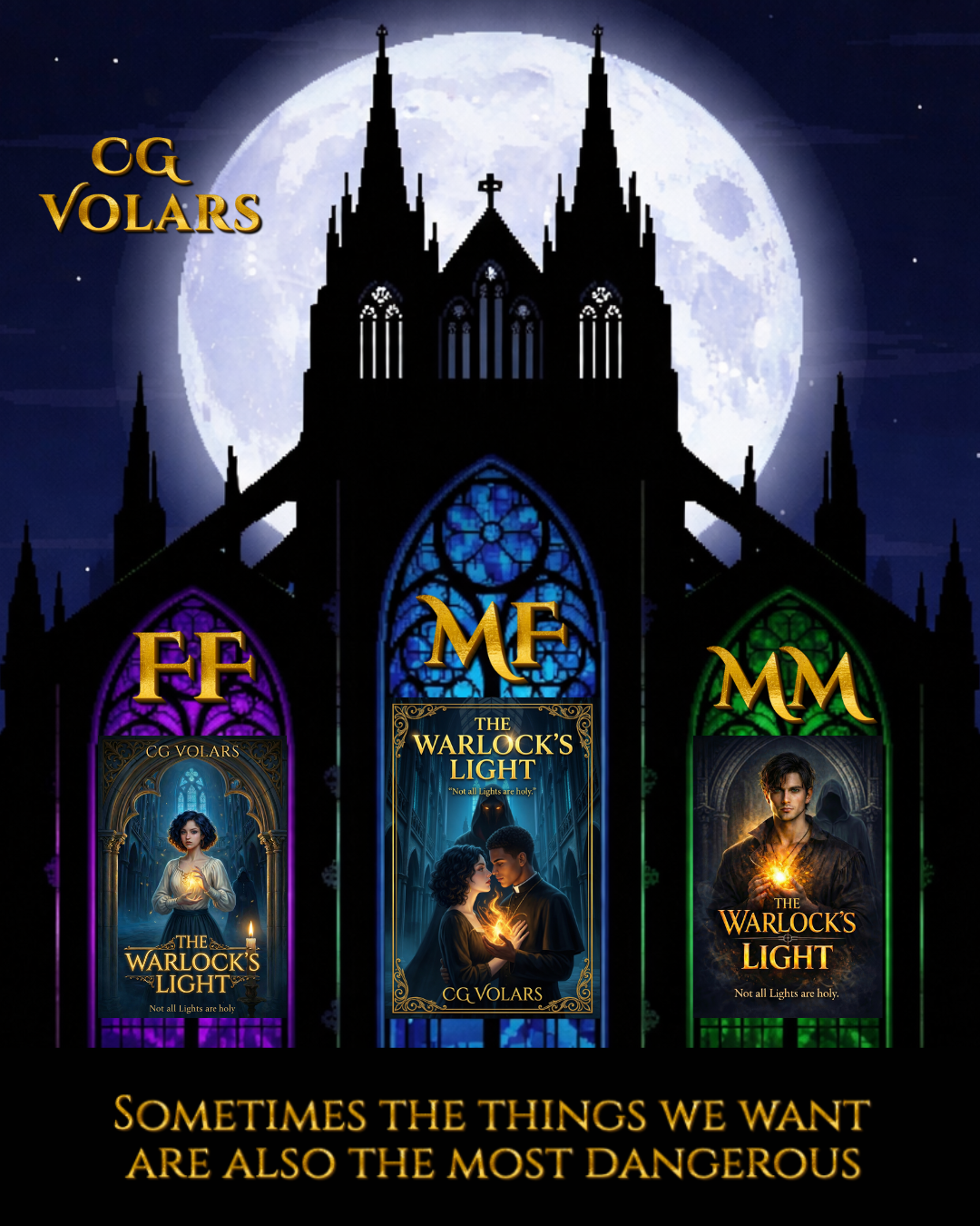 The Cursed Reliquary Chronicles begins with The Warlock’s Light- a tale of forbidden devotion and luminous horror–and continues through a saga of magic, temptation, and redemption that span the sacred and the damned.